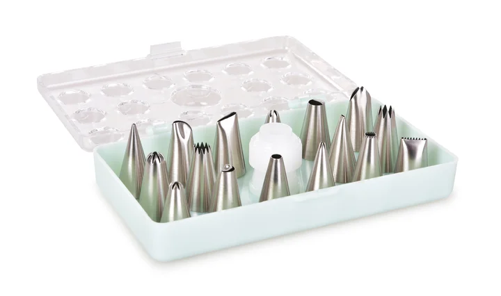 - Prenositeľnosť: Vďaka kompaktným rozmerom krabice je sada špičiek ľahko prenosná na dovolenku, večierky alebo cukrárske workshopy mimo domova.