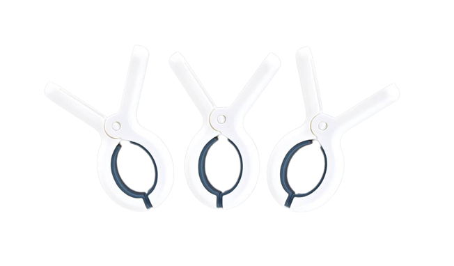 Sada 3 MAXIKOLÍČKOV na objemný textil ideálny na uchytenie diek, prikrývok alebo uterákov. Pevný plast, kovová pružina a vnútorné soft touch silikón zaisťujú šetrné a spoľahlivé pripevnenie. Perfektný na lehátka, šnúry i širšie tyče – ideálny na dovolenku aj kempovanie.