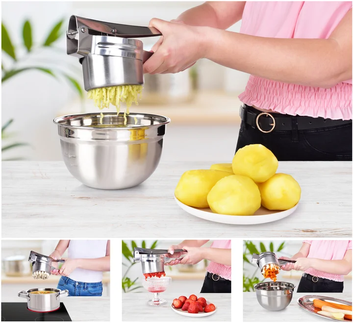 - CHEF 3v1 masívny nerezový univerzálny lis na zemiaky, pyré a závarky