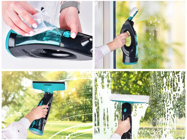 3v1 systém - rozprašovač + mikrovláknová utierka + odsávanie vody.