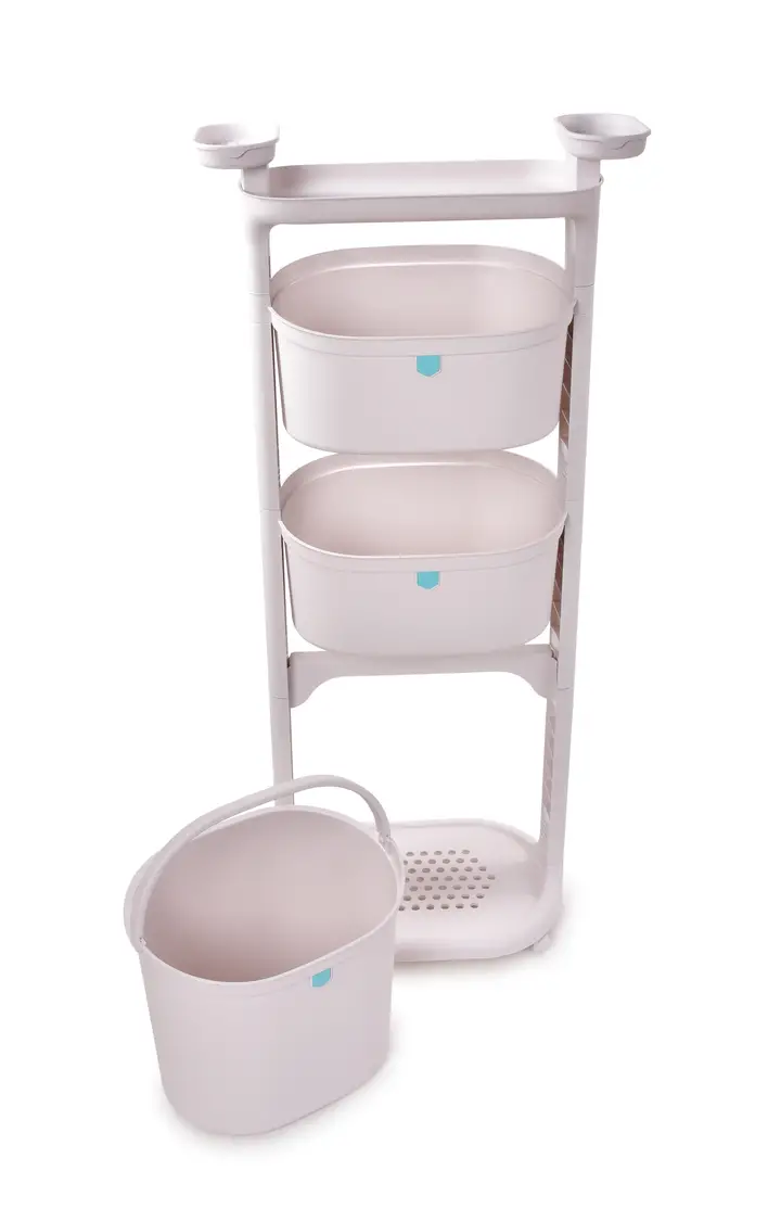- PRAKTIK 4poschodový pojazdný regál s vyberateľným 15 L vedrom a úložnými policami