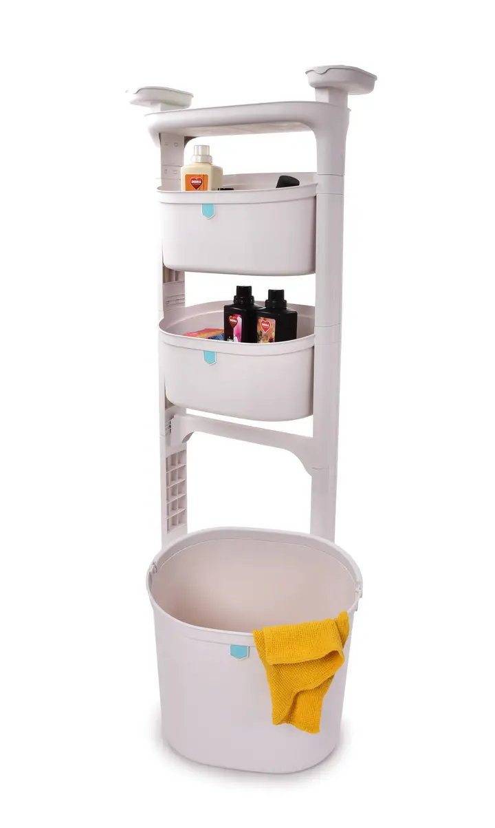 Viacúčelový pojazdný regál PRAKTIK so 4 policami a vyberateľným 15L vedierkom. Ideálna pre upratovacie potreby, pranie či skladovanie v domácnosti. Vyrobený z pevného plastu, ľahko premiestniteľný vďaka kolieskam. Praktické riešenie pre efektívnu organizáciu a mobilné použitie.