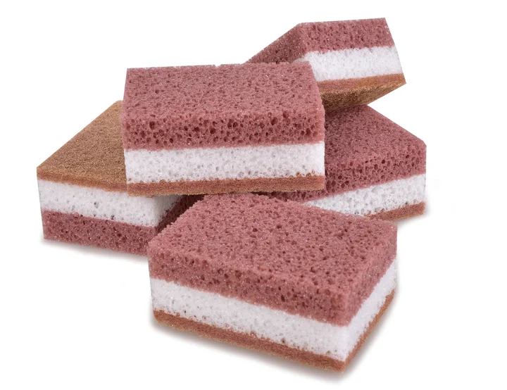 Dobre pení a nespôsobujú škrabance, zdrsnená strana pre ľahké odstránenie zaschnutých nečistôt.