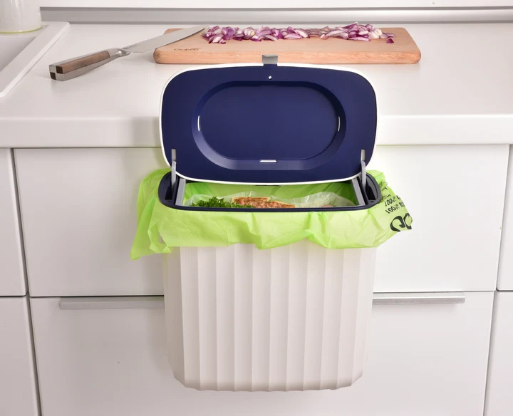 Kuchynský zbytkovník ľahko zavesíš na dvierka linky a pri krájaní alebo lúpanie tí už nebudú padať zvyšky potravín na zem.