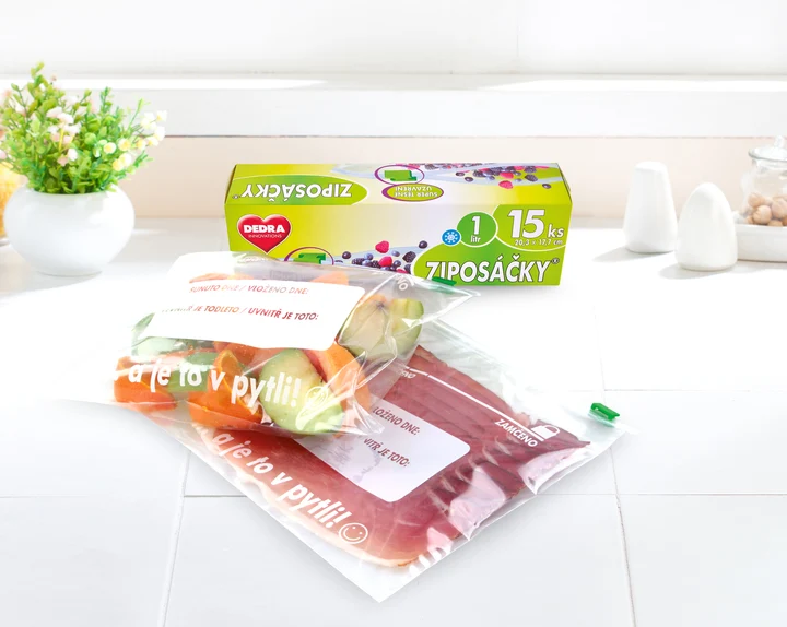 Vrecká so zipsom vzduchotesne uzavrieš a sú ideálne na uchovanie/zamrazovanie potravín v chladničke alebo mrazničke.