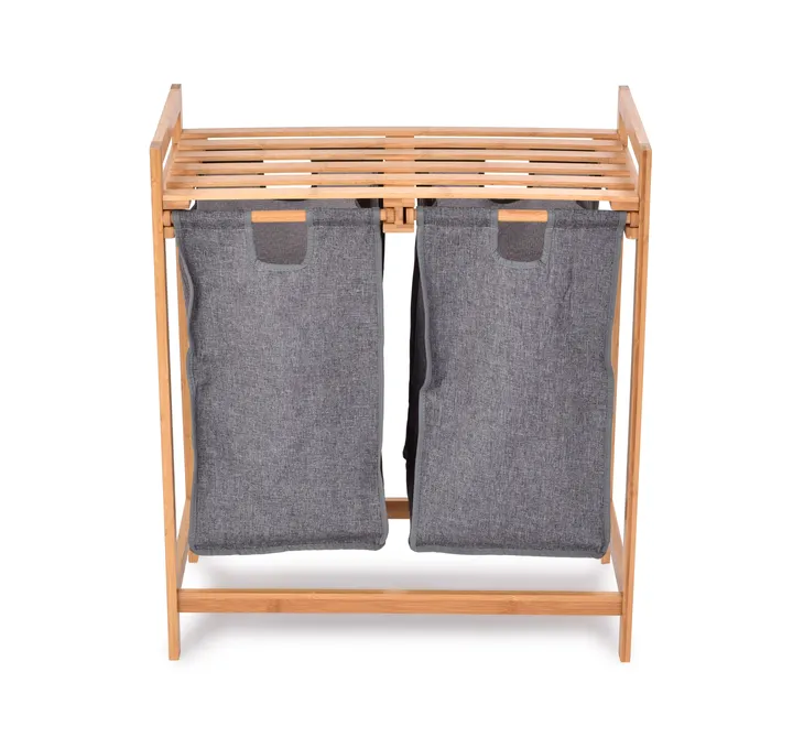 Štýlový bambusový regál GoEco® s 2 výsuvnými košmi uľahčuje triedenie bielej a farebnej bielizne. Ideálna do kúpeľne, práčovne či spálne. Koše sú označené pre ľahké rozlíšenie, konštrukcia je stabilná a odolná voči vlhkosti. Ekologické a praktické riešenie pre každodenné používanie.