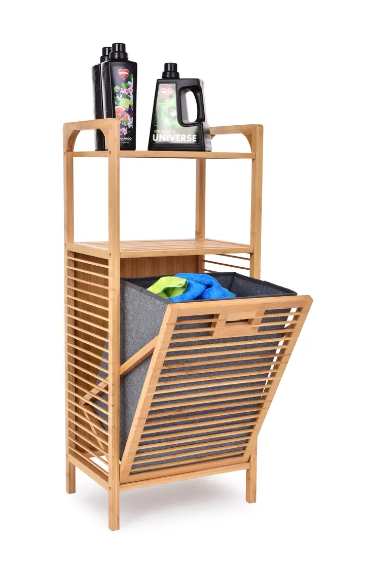 BAMBUSOVÝ REGÁL s odklápacím košom na bielizeň GoEco®