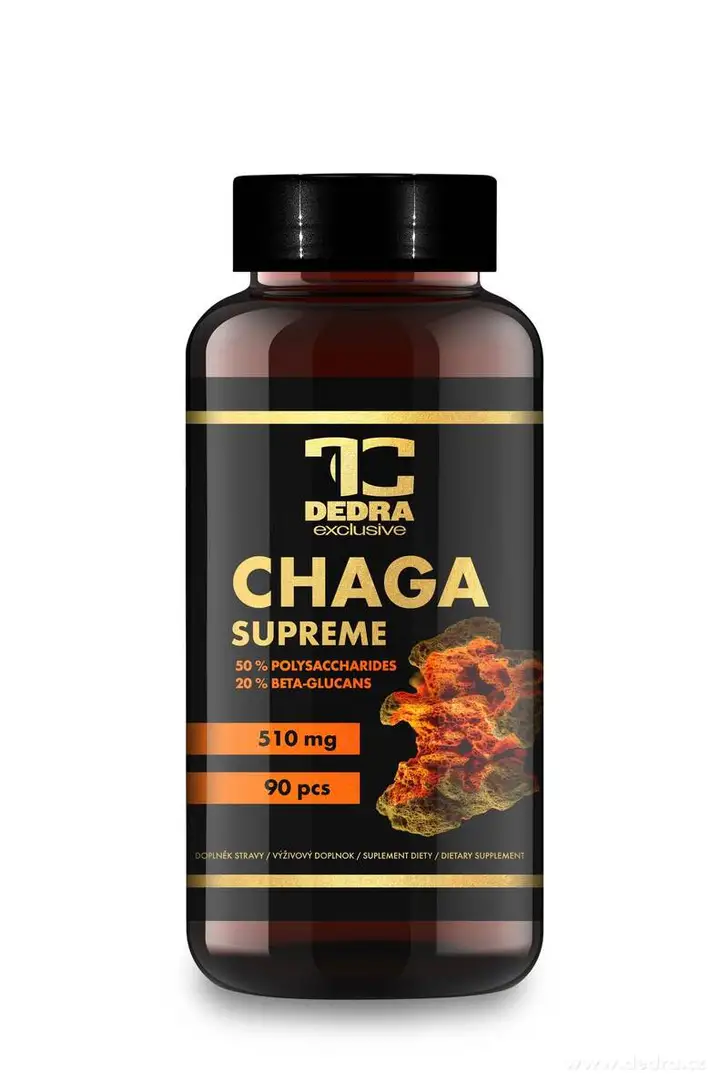 Chaga (hrdzavec šikmý, Inonotus obliquus) je vitálna huba s vysokým obsahom polysacharidov a beta-glukánov. Podporuje imunitu, chráni bunky pred oxidačným stresom a prispieva k vitalite organizmu. Je bohatá na vitamíny, minerály a antioxidanty. 90 rastlinných kapsúl, vhodné pre vegánov.