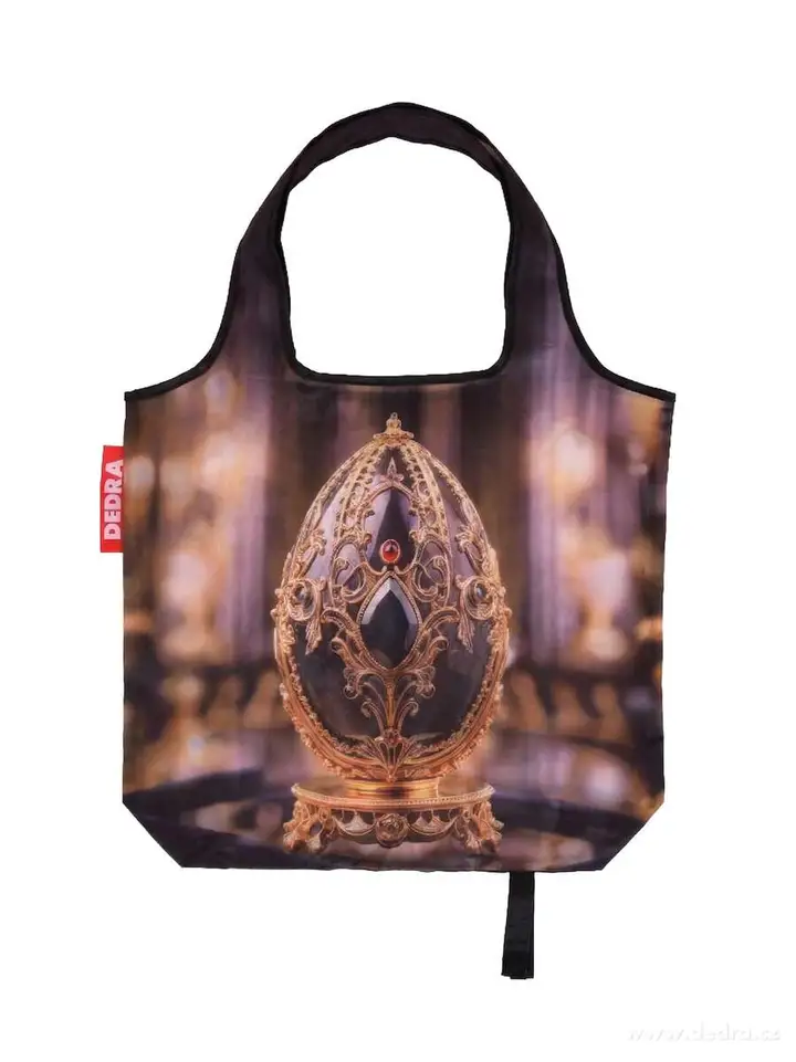 Nákupná skladacia taška, zafixovanie na patent. Materiál: polyester (PES). Nosnosť 18 kg. Rozmery cca: š 46 x v 60 cm s uchami (bez uší 39 cm).