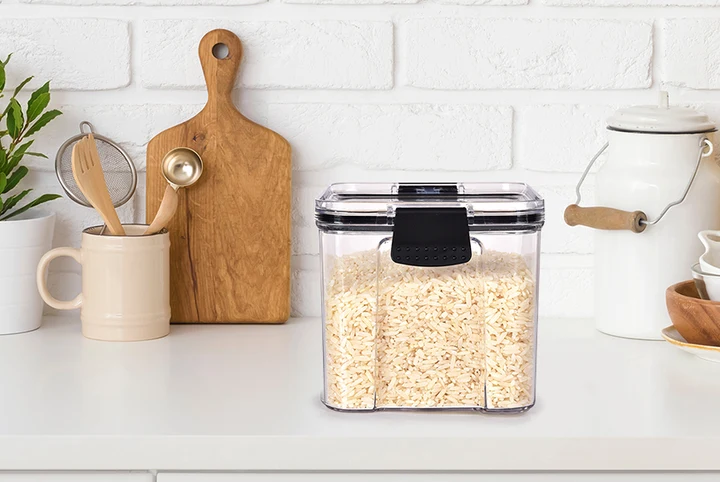 Môžeš použiť na uskladnenie sypkých potravín bez obalu, napr. na cestoviny, ryžu, šošovku, cukor, múku, kávu, listový čaj, orechy, korenie….