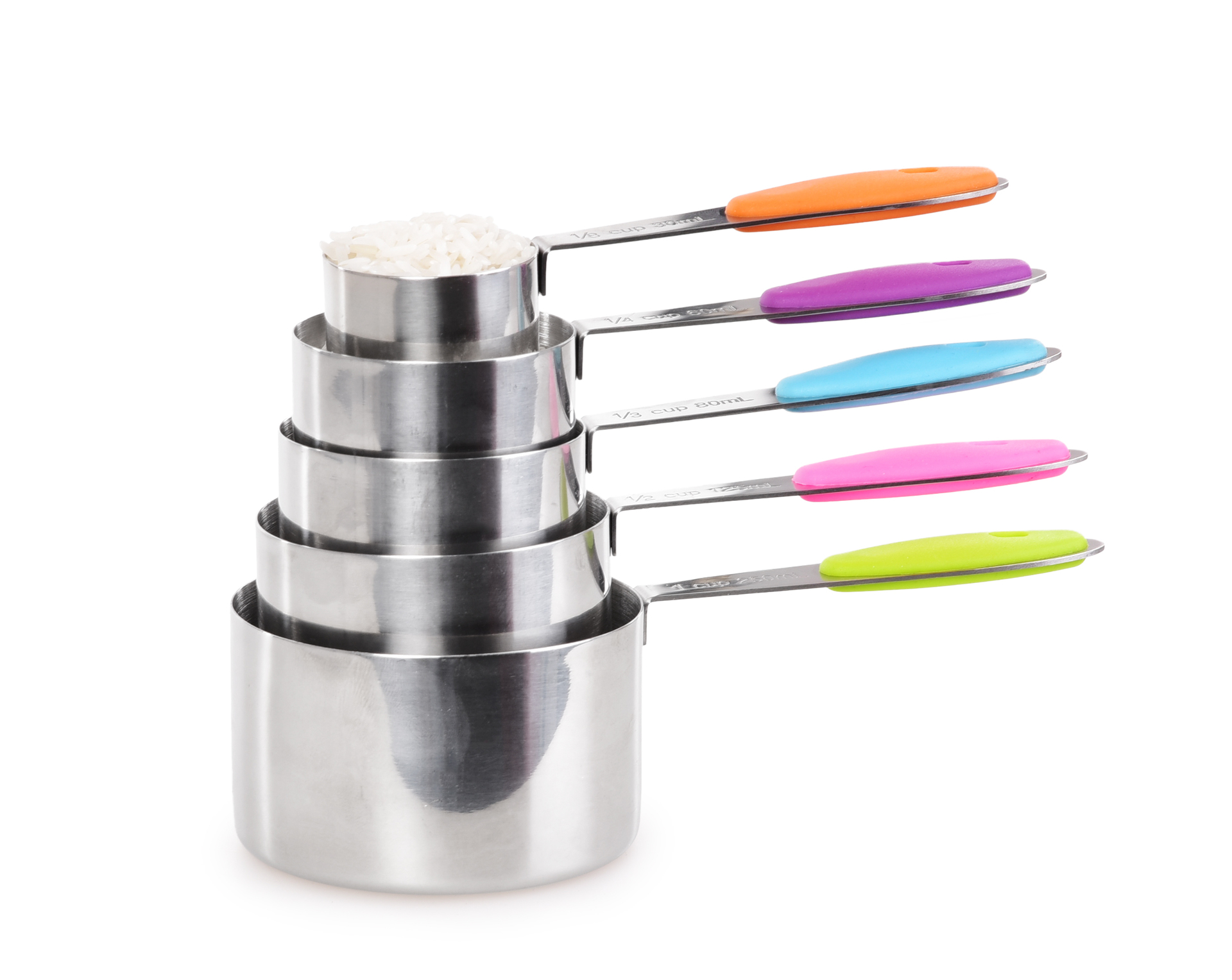 - Farebné úchytky: Každá miera je vybavená úchopom v inej farbe, čo uľahčuje ich identifikáciu a rozlišovanie pri používaní. Farebné úchopy taktiež pridávajú estetiku a veselý akcent do kuchynského priestoru.