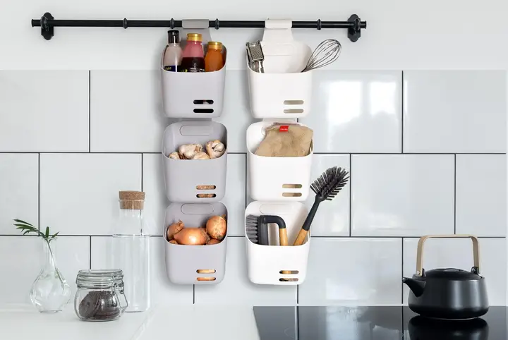 - Modulárnosť - konštrukcia organizéra umožňuje spojenie niekoľkých nádob vertikálne, čo umožňuje vytvorenie väčšieho úložného systému prispôsobeného individuálnym potrebám. Možnosť spojenia nádob zvyšuje jeho funkčnosť a flexibilitu.