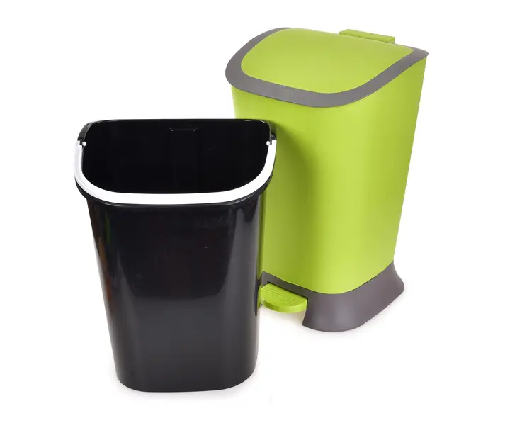 Nášľapný odpadkový kôš s vekom. Vyberateľná vnútorná nádoba.