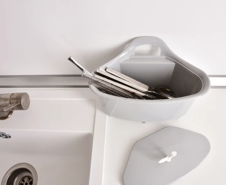 Odkvapkávač na príbory a kuchynské náčinie, vyrobené z odolného plastu.