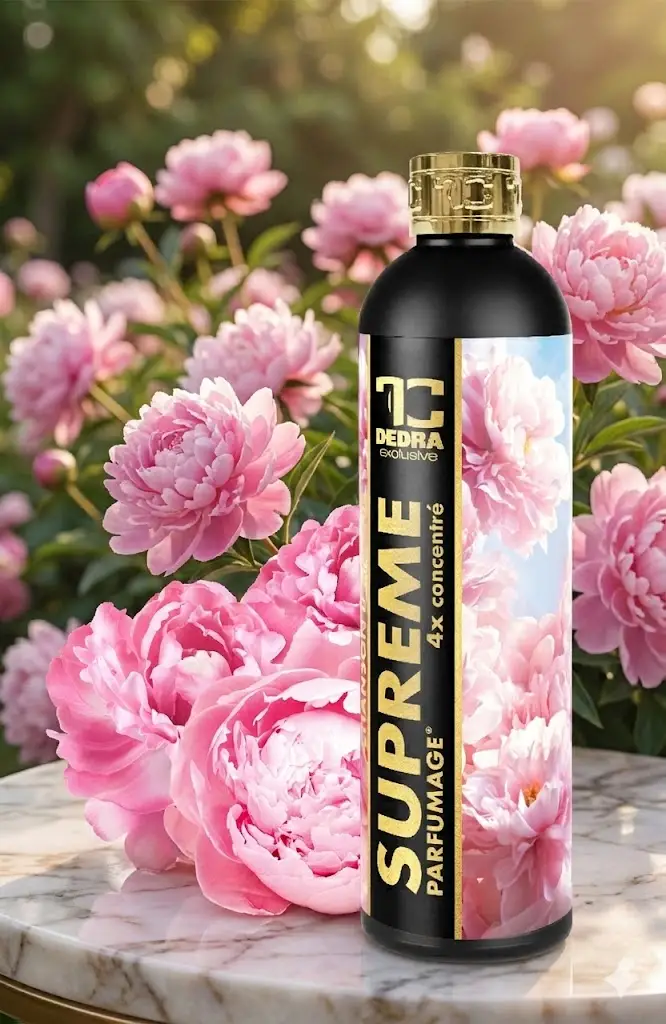 PARFUMAGE® SUPREME CHANSON D´AMOUR – 4× menšia dávka, 4× väčší účinok. Stačí len 5–15 ml na pranie a vaša bielizeň získa intenzívnu a dlhotrvajúcu vôňu. Oživuje farby, neutralizuje zvyšky pracích prostriedkov a je šetrný k pokožke aj práčke. Menšia dávka – väčší účinok, vhodné až do 95 °C.