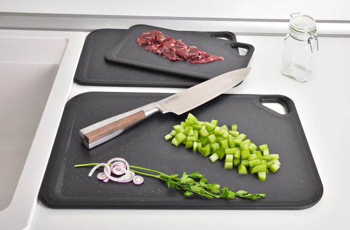- Viacúčelnosť: Sada 3 rôznych veľkostí dosiek na krájanie umožňuje súčasné prípravy rôznych surovín bez nutnosti neustáleho umývania a sušenia jednej dosky.