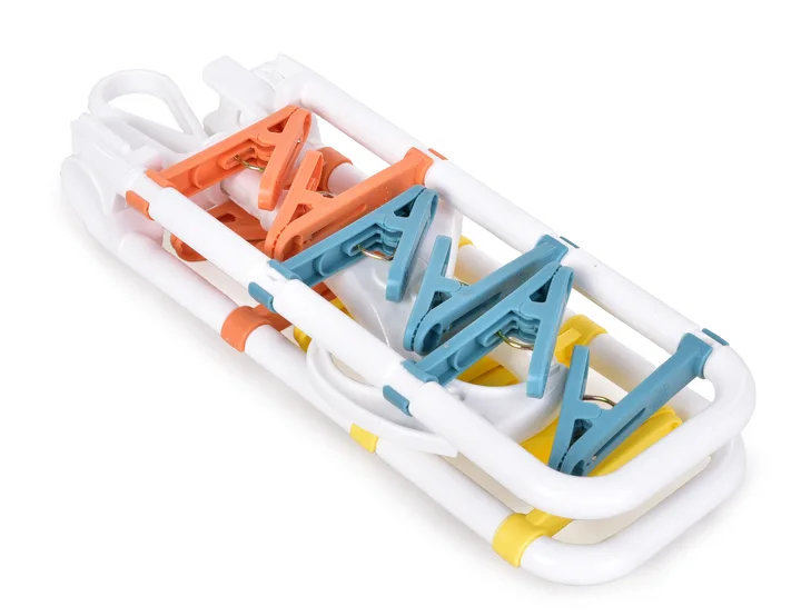 ŠTIPCOVNÍK skladací vešiak s 12 farebnými štipcami na bielizeň