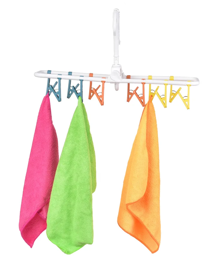 Skladací vešiak KOLÍČKOVNÍK s 12 farebnými štipcami je ideálny na sušenie drobnej bielizne – ponožiek, spodnej bielizne či utierok. Uzavretý háčik zabráni odfúknutiu vo vetre. Vhodný dovnútra aj von, ľahko sa zloží na úsporu miesta.