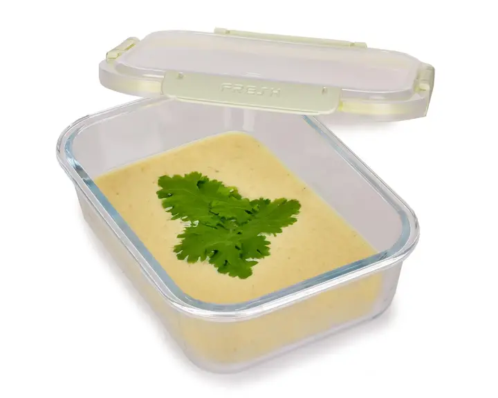 - Tesnenie vzduchotesne: Veko s silikónovým tesnením uzavretým klipsami zaisťuje vzduchotesné uzavretie dózy, čo chráni skladované produkty pred prístupom vzduchu a vlhkosti, udržujúc ich dlhšie čerstvé.