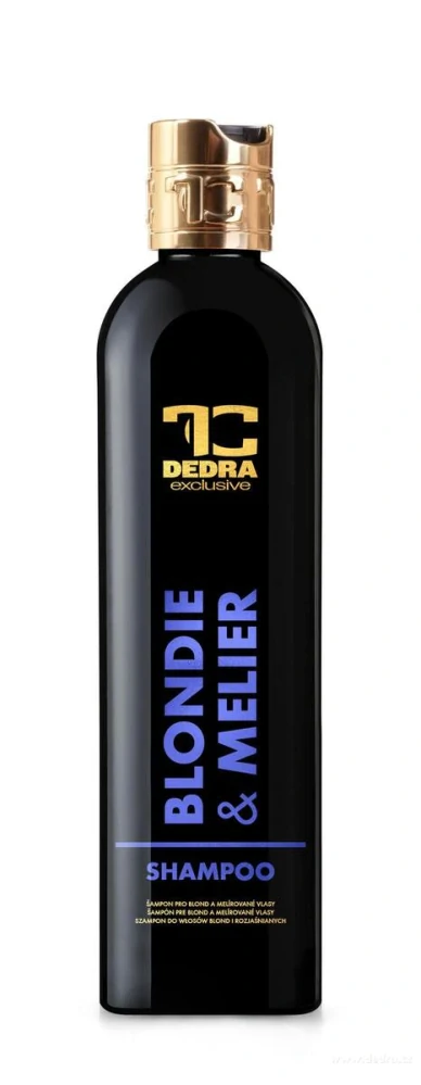 Špeciálny šampón pre blond a melírované vlasy, BLONDIE & MELIER, 320 ml. Šampón BLONDIE & MELIER je navrhnutý špeciálne pre potreby blond a melírovaných vlasov. Tento šampón nielen čistí a vyživuje vlasy, ale tiež účinne neutralizuje nežiaduce žlté odtiene, ktoré môžu vznikať pri svetlých vlasoch. Vďaka jedinečnej kombinácii starostlivo vybraných zložiek udrží tento šampón vaše vlasy svieže, lesklé a krásne tónované.