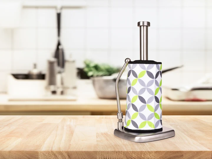 Masívny nerezový stojan na papierové aj látkové kuchynské utierky so zarážkou proti nechcenému rozmotaniu.